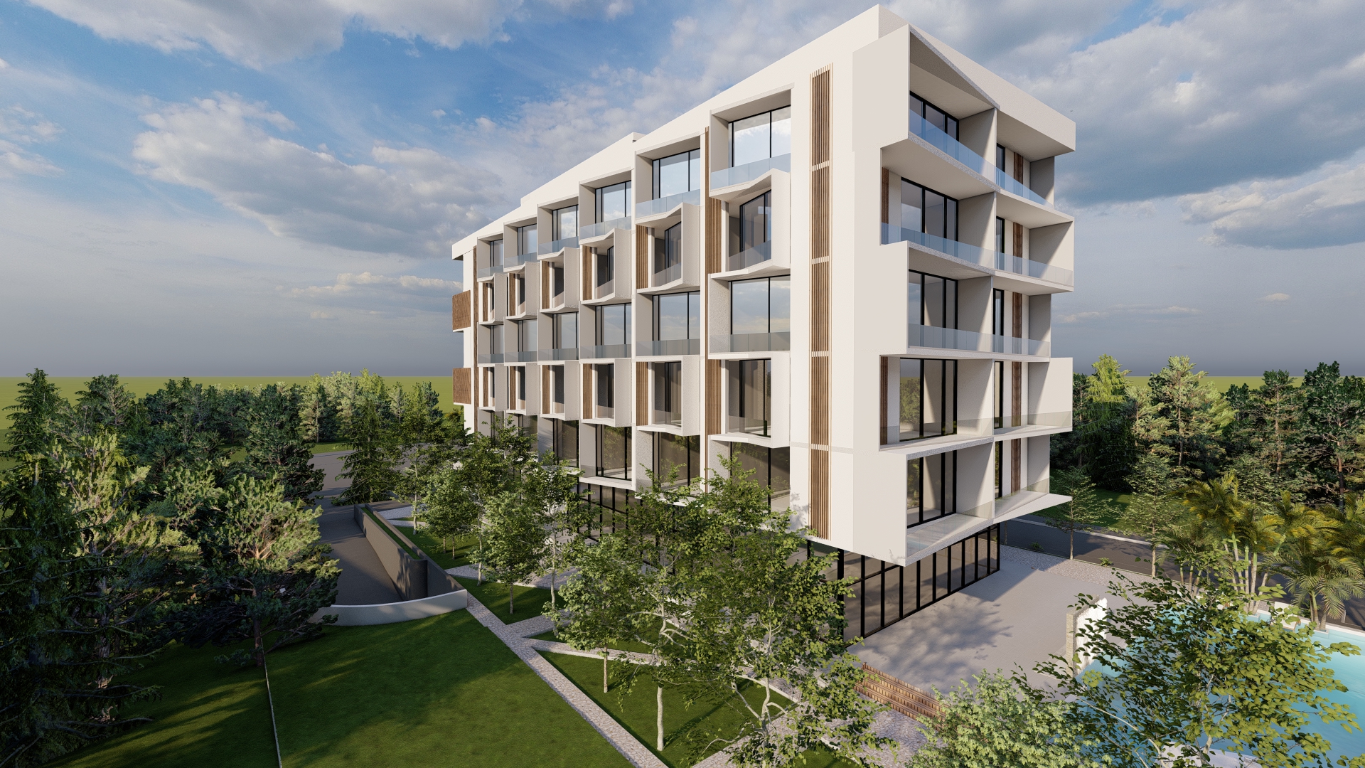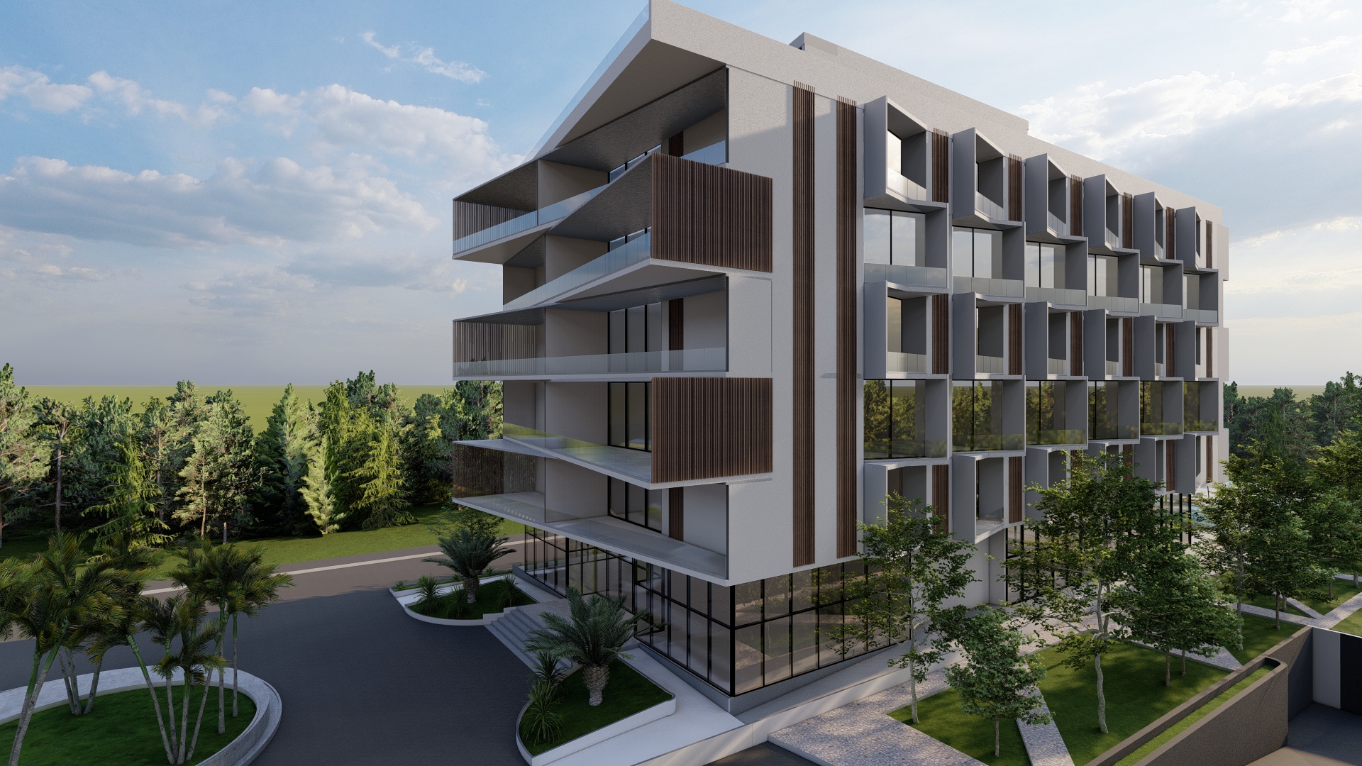 The proposed design envisions the harmonious integration of a hotel and a park along the attractive Berat highway. Situated in an area characterized by its serene and tranquil surroundings, the development is strategically located just fifteen minutes away from the famous historic city. The genesis of the hotel concept emerged through a harmonious synergy between the esteemed client and our architectural studio. The client’s concept revolved around an authoritative, linear structure that would assert its presence within the surrounding space.
